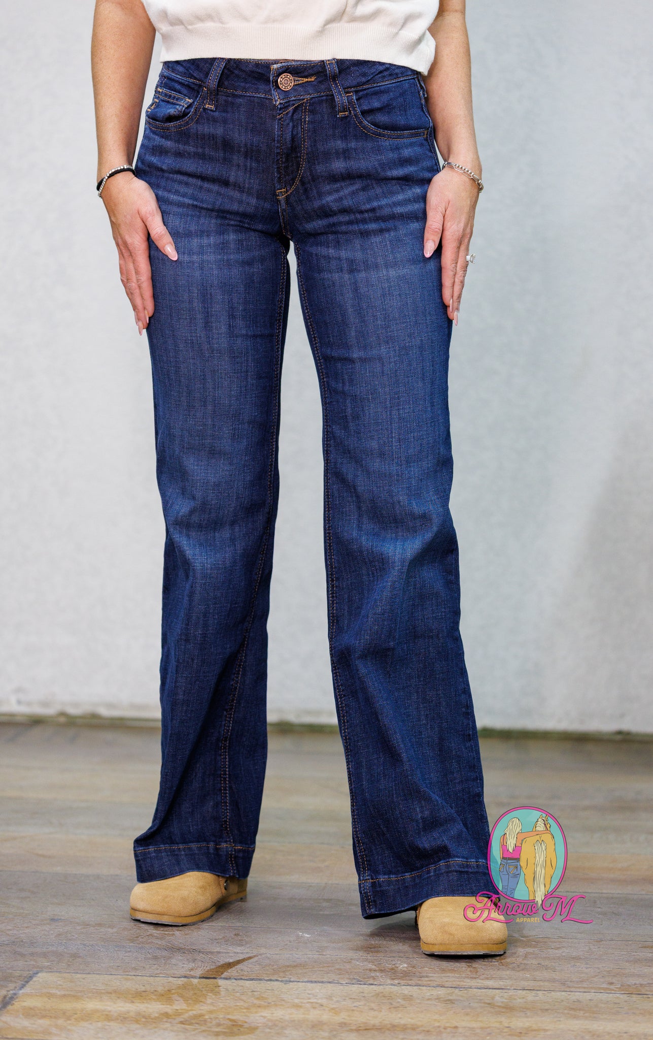 • 18.75" boot cut leg stacks perfectly over boots